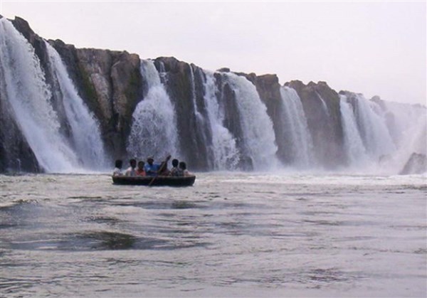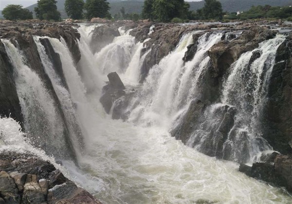 Hogenakkal Falls or Hogenakal Falls is awaterfallinSouth Indiaon theKaveri (or Cauvery) River. It is located in theDharmapuri districtof the southern Indian state ofTamil Nadu, about 180 km fromBangaloreand 46 km fromDharmapuritown.It is sometimes referred to as the "Niagara of India" With its fame for medicinal baths and hide boat rides, it is a major site of tourist attraction.Carbonatiterocks in this site are considered to be the oldest of its kind in South Asia and one of the oldest in the world. This is also the site of a proposed project to generate drinking water.